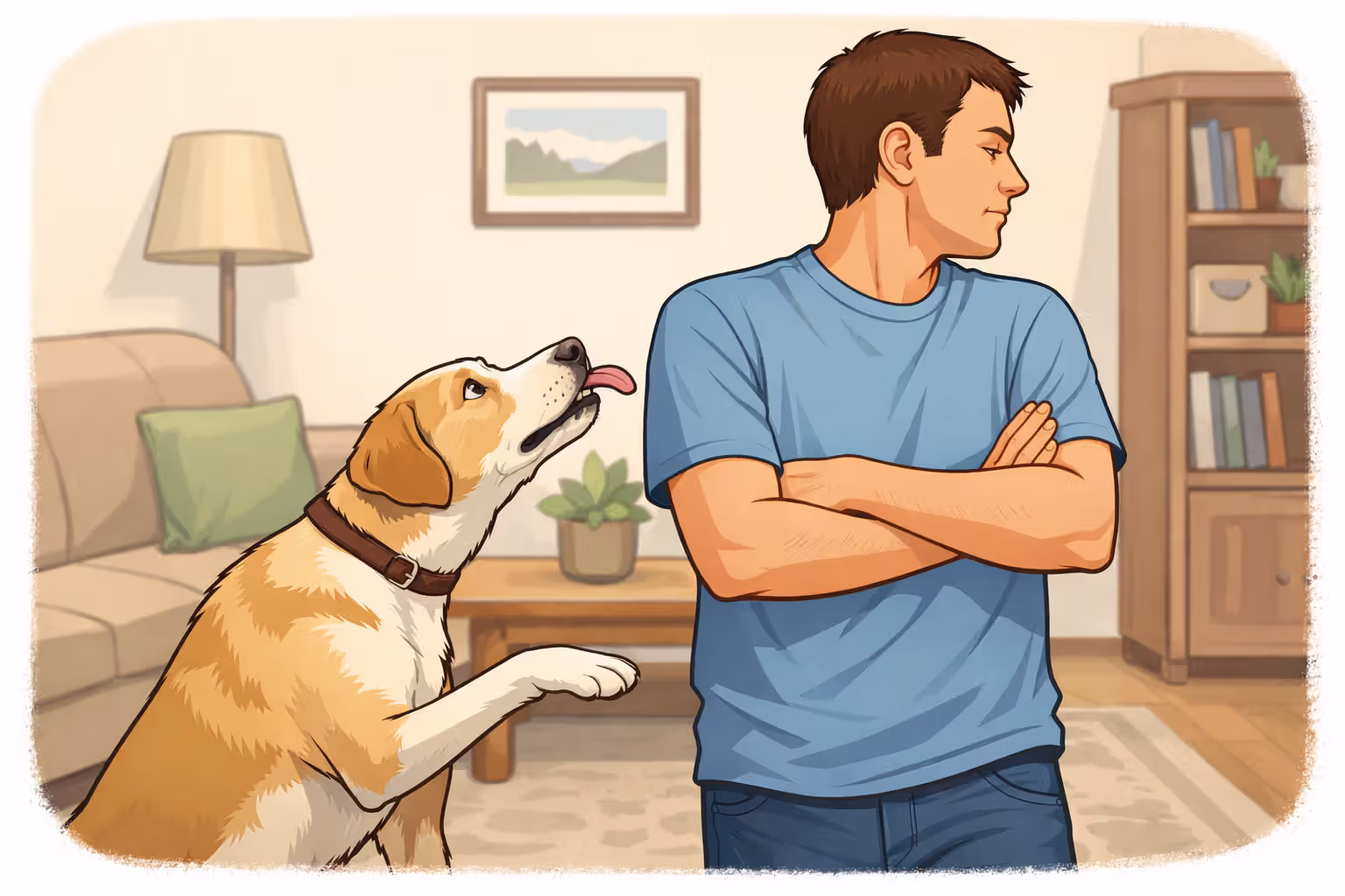 Here's the tricky part: even pushing your dog away counts as reinforcement for many dogs. You touched them, made eye contact, and acknowledged their existence. Dogs who don't get enough attention throughout the day often prefer negative attention to being ignored. Laughing at persistent licking? That's approval in your dog's mind. Scolding them? Still interaction, still better than nothing. You might think you're discouraging the behavior, but your dog's getting exactly what they wanted.